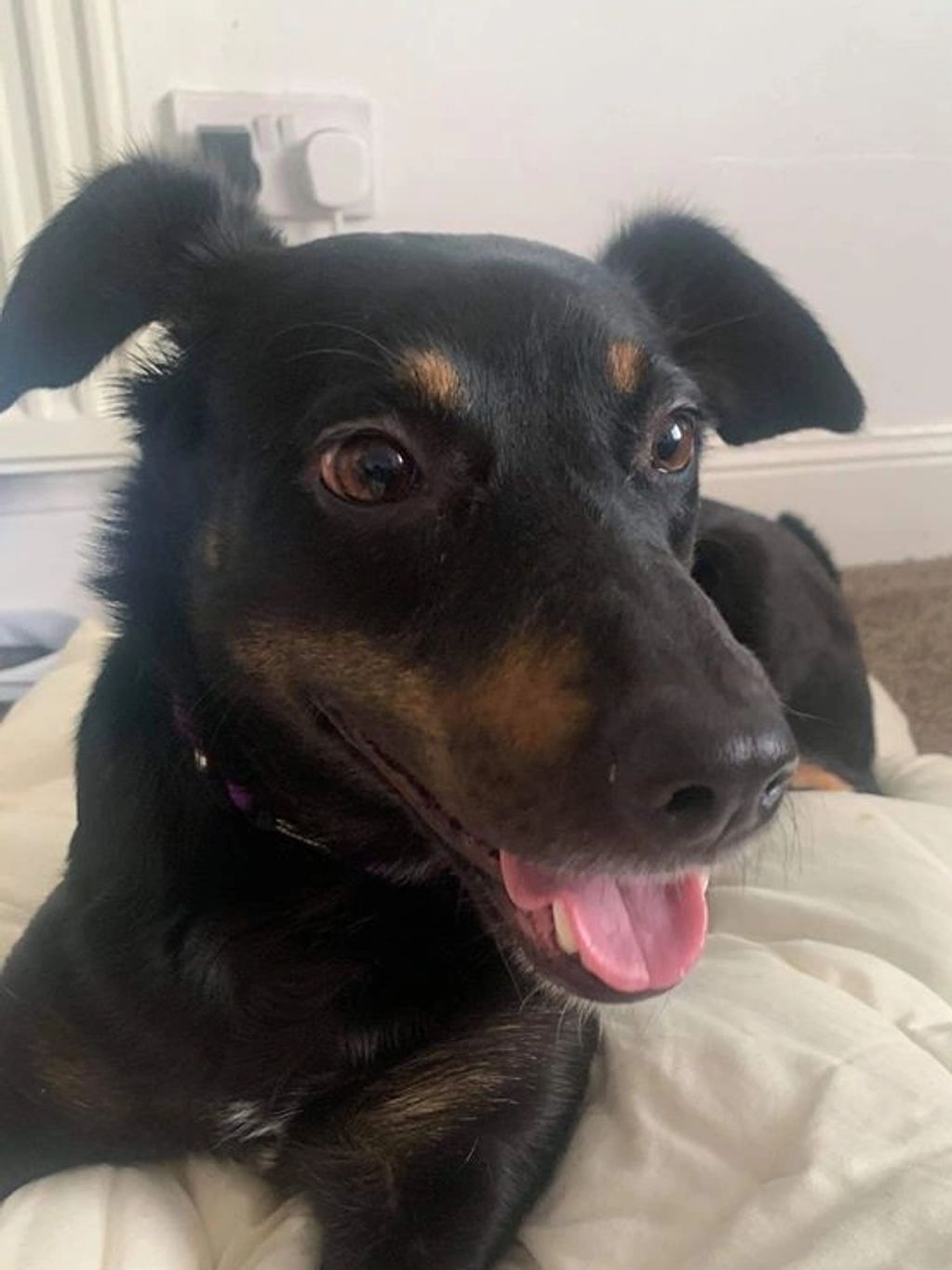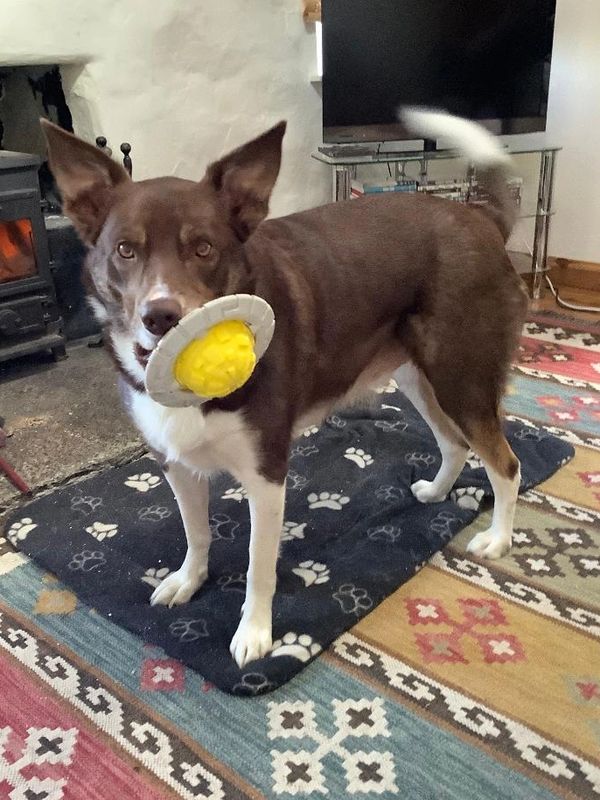 We rehomed Jake back in January 2022 and it’s like he’s been with us forever. He’s settled in well. He loves toys and the squeakier the better! Love Audrey Colin and Scott x”